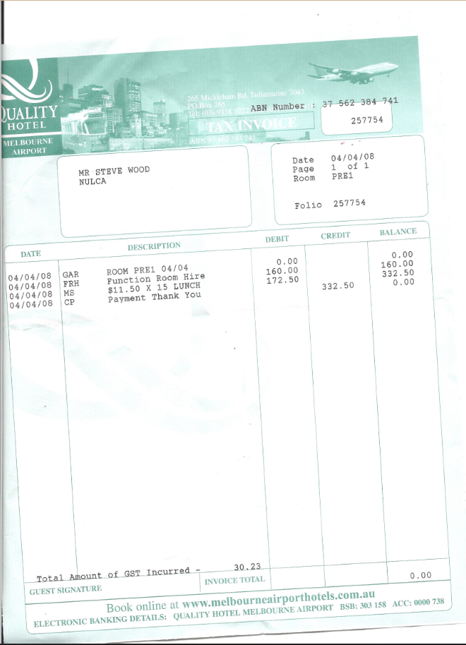 Invoice for Meeting 4th April 2008
