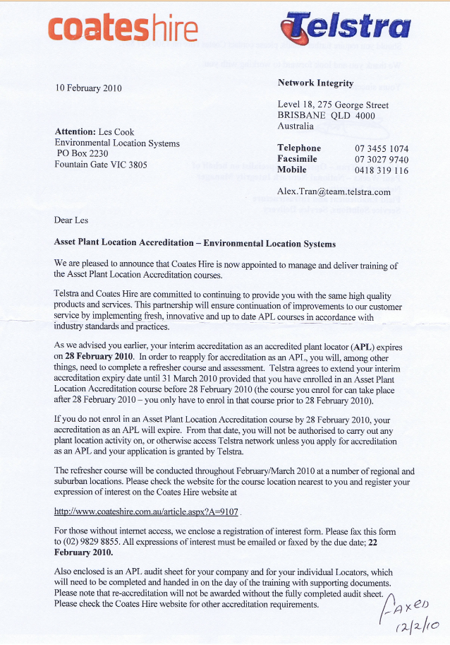 Telstra Letter to APL,s